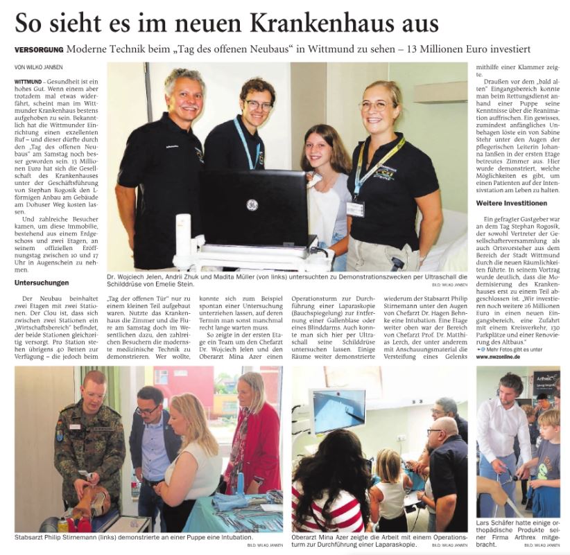 Die praktische Erprobung also sollte den Ole diesmal zum „Tag des Offenen Neubaus“ ins Wittmunder Krankenhaus  führen – der Anzeiger für Harlingerland berichtete – dessen Geschäftsführung auf Nachfrage sich über mehrere tausend Besucher freuen konnte.