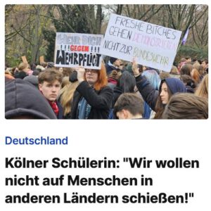 Jetzt versprechen die Koalitionspartner: „Die Ukraine werden wir umfassend unterstützen, sodass sie sich gegen den russischen Aggressor effektiv verteidigen und sich in Verhandlungen behaupten kann.“ Und der Verteidigungsminister sagt, Deutschland müsse bis 2029 „kriegstüchtig“ sein. Das ist nichts Anderes als ein Verbrechen gegenüber der eigenen Bevölkerung und ein existenzbedrohender Irrweg.
