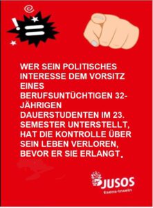 Ole Willms, SPD-Ratsmitglied, Juso-Chef, 30-jähriger berufsunfähiger Dauerstudent im 20. Semester, hat auch in diesem Jahr wohl wieder nicht den Abschluß geschafft; wir drücken ihm die Daumen für 2024.