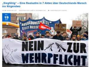 Jetzt versprechen die Koalitionspartner: „Die Ukraine werden wir umfassend unterstützen, sodass sie sich gegen den russischen Aggressor effektiv verteidigen und sich in Verhandlungen behaupten kann.“ Und der Verteidigungsminister sagt, Deutschland müsse bis 2029 „kriegstüchtig“ sein. Das ist nichts Anderes als ein Verbrechen gegenüber der eigenen Bevölkerung und ein existenzbedrohender Irrweg.