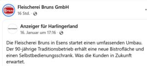 Im Harlinger-StürmerKasten erzählt das Fähnlein Detlef Kiesé ein Stück Prosperität der Fleischerei Bruns zu deren Neunzigstem.