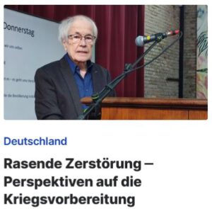 Der Publizist Dr. Wolfgang Bittner wird zum Thema „Wie die Bevölkerung indoktriniert und auf einen Krieg eingestimmt wird“ vortragen. Aus seiner Perspektive wurde die Gesellschaft seitens der Regierung schon seit Jahren darauf vorbereitet, autoritäre politische Maßnahmen zu akzeptieren. In seiner Zusammenfassung führte er dazu aus: Die Verhältnisse in Deutschland haben sich in den vergangenen Jahren – politisch gesteuert – grundlegend verändert: