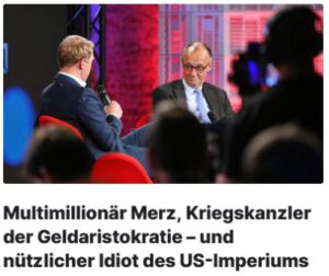 Volker Bräutigam und Friedhelm Klinkhammer ziehen nach einem halben Jahr Merz-Regierung eine mehr als ernüchternde Bilanz. Beim BlackRock-Mann Friedrich Merz kann man sich nicht sicher sein, dass er ein Ehemaliger ist. Den Interessen der Mehrheit der Deutschen dient er jedenfalls nicht. Volker Bräutigam, Friedhelm Klinkhammer, 30.10.2025 via Ständige Publikumskonferenz – Weiterlesen!